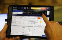 Mit einem Tablet hat der Arzt Zugriff auf aktuelle Herz-Daten des Patienten, wie Herzfrequenzvariabilität, Vorhofflimmern und Wasseransammlungen.