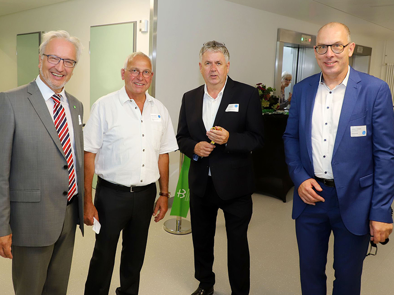 Zur Eröffnung des Neubaus von Haus 3 wurde symbolisch ein Band durchschnitten (v.l.): Prof. Dr. Michael Karaus (Med. Geschäftsführer EKW), Oberbürgermeisterin Petra Broistedt, Hans-Joachim Lenke (Aufsichtsratsvorsitzender EKW) und Frank Czeczelski (Kfm. Geschäftsführer EKW). Foto: EKW